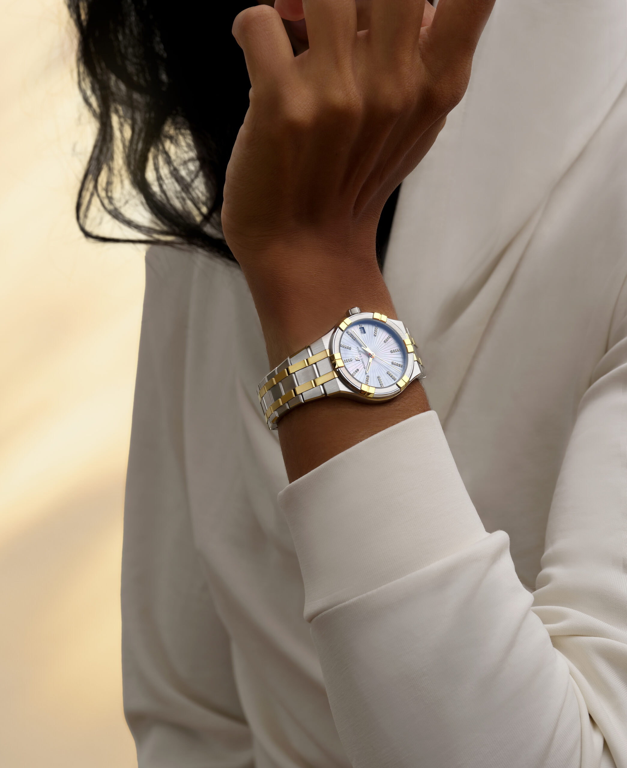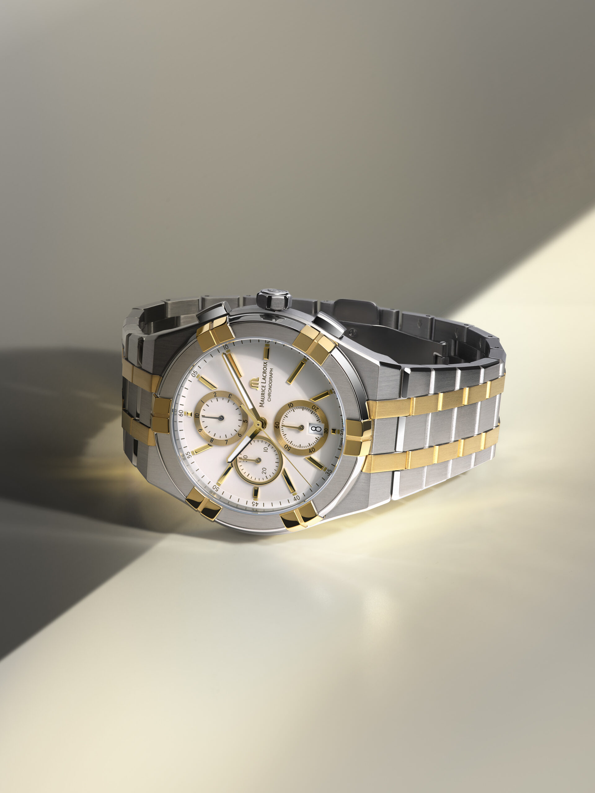 Představujeme vám edici Duotone Editions od Maurice Lacroix, podmanivou kombinaci stříbrných a zlatých tónů, která je navržená tak, aby na vaše zápěstí přinesla nádech elegance a městského stylu. Tyto jedinečné hodinky odrážejí krásu „golden hour“, kdy se teplé a chladné tóny plynule spojují a vytvářejí tak bez námahy stylový vzhled. Ať už prozkoumáváte město, nebo se účastníte výjimečné události, tyto hodinky spojují promyšlený design s výjimečným řemeslným zpracováním a s lehkostí pozvednou váš vzhled.