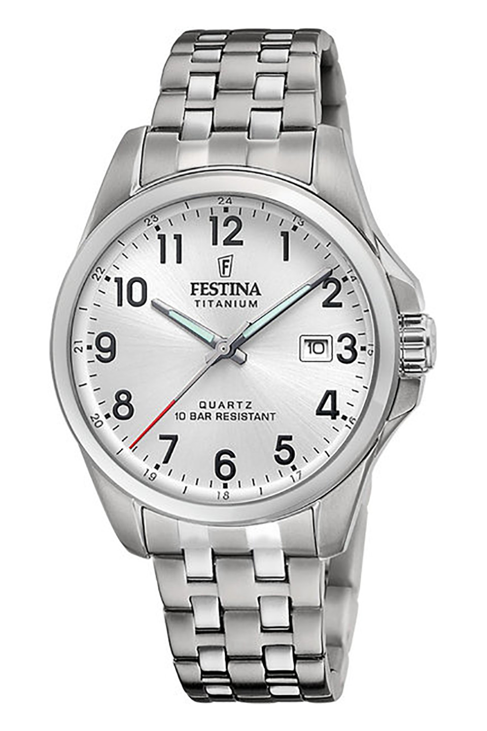 Hodinky Festina Titanium je unikátní a výjimečná kolekce titanových hodinek od společnosti Festina. Příjemné minimalistické provedení v kombinaci s výjimečnými vlastnostmi materiálu titanu. Titan vyniká svou pevností, menší hustotou a lehkostí. Tyto vlastnosti dělají z titanu houževnatý kov odolný proti korozi a poškrábání. Hodinky vyrobené z tohoto materiálu se vyznačují dlouhou životností jakou jiné kovy a materiály nabídnout nemohou. Hodinky Festina Titanium jsou díky použitému hi-tech materiálu antialergické a odolávají chemickým látkám. Stávají se tak vhodnými hodinkami pro každou příležitost.