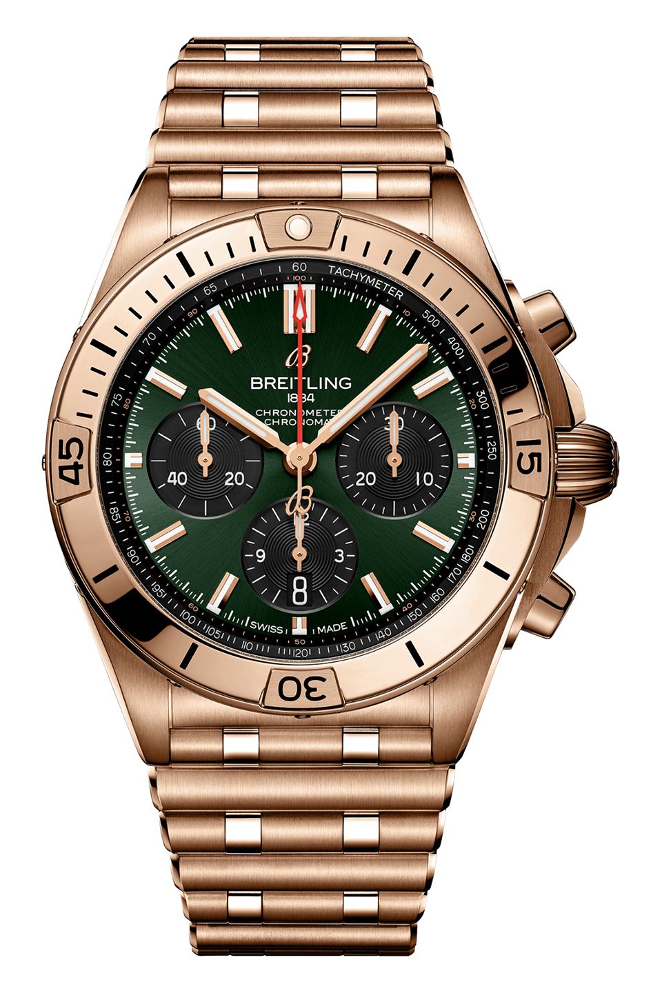 Řada Breitling Chronomat byla poprvé uvedena v roce 1941 a první edice byla určena jako nástroj pro matematiky a inženýry. Později byla řada upravena aby splňovala nejpřísnější nároky akrobatického týmu Frecce Tricolori, kde po 30 let zůstaly Chronomaty první volbou této světoznámé letecké skupiny. Novodobá historie se začala psát v roce 1984, kdy jejich vzhled byl zmodernizován i s patentovanou ikonickou otočnou lunetou. Navazují na jedinečný začátek hodinek Breitling Chronomat dnes nabízí hodinky s chronografem v robustním, ale přesto elegantním pouzdrem.