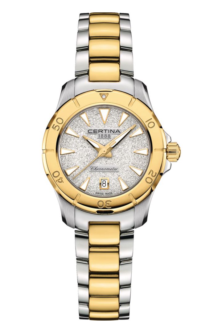 Hodinky DS Action Lady, které v sobě spojují eleganci a výkon, jsou speciálně navrženy pro ženy, které hledají sportovní a zároveň rafinované hodinky. Jeho 29mm pouzdro ukrývá vysoce přesný quartzový strojek, který zaručuje absolutní spolehlivost při každodenním používání. Díky ikonickému konceptu DS (Double Security) značky Certina nabízí tyto hodinky výjimečnou odolnost a působivou vodotěsnost až do hloubky 200 metrů. Jednosměrná otočná luneta a antireflexní safírové sklo dokonale doplňují tento model, který vás bude doprovázet ve vašem každodenním životě.