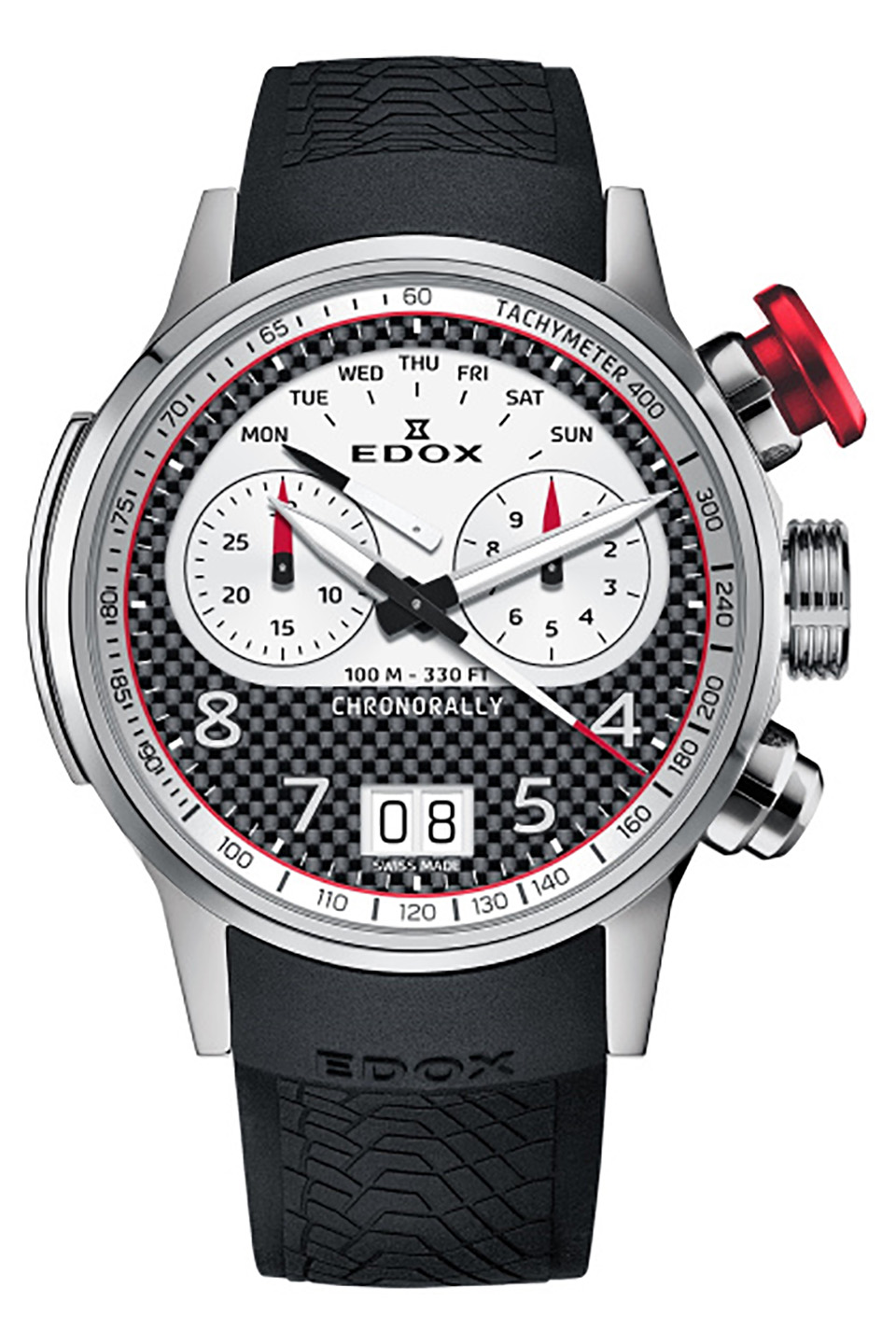 Hodinky Edox Chronorally jsou dostatečné odolné, aby přežily i ty nejdrsnější podmínky. Společností Edox jsou navrženy a zkonstruovány tak, aby byly schopny odolat i těm nejextrémnějším podmínkám. Celá modelová řada se vyznačuje nejlepšími moderními materiály jako jsou silné pryžové řemínky, pevná a robustní pouzdra s využitím spolehlivých hodinových strojků. Tlačítka chronografu jsou svou velikostí uzpůsobena snadnému ovládání i v rukavicích. Hodinky Edox Chronorally jsou ztělesněním síly, vytrvalosti a každým detailem provázány se sportovním motoristickým světem.