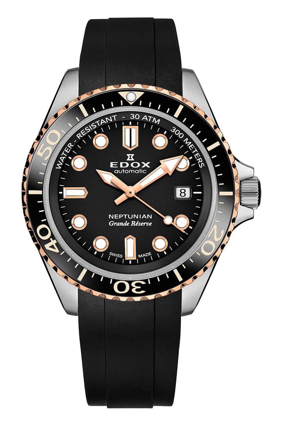 Téměř před 50 lety uvedl švýcarský výrobce hodinek Edox na trh legendární hodinky SkyDiver, odolné sportovní hodinky vytvořené speciálně pro elitní vojenskou skupinu. Nyní, s uvedením modelu Neptunian, dokončuje Edox přeměnu svého modelu z roku 1973 na extrémně odolné potápěčské hodinky a novou samostatnou kolekci. Hodinky Neptunian jsou vodotěsné do neuvěřitelné hloubky 1 000 m a jsou konstruovány mimořádně odolně, aby zvládly nejen tlak hlubin, ale díky pevnému a odolnému pouzdru z nerezové oceli i cokoli na povrchu. Klasický, čistý ciferník obklopený keramickou lunetou chrání 3 mm silné safírové sklíčko.