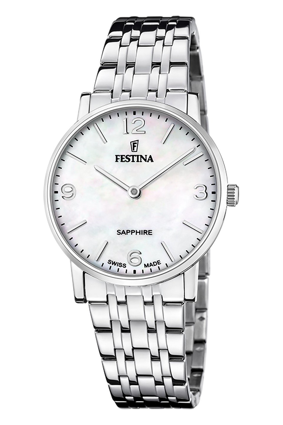 Firma Festina byla založena ve Švýcarském La Chaux-de-Fonds v roce 1902. V roce 1984 převzal značku Miguel Rodriguez a došlo k jejímu začlenění do skupiny Festina-Lotus group. Díky začínajícímu rozmachu quartzových strojků se právě v této době začala psát nová epocha této značky, roku 1992 se dokonce stává oficiálním partnerem pro měření času na závodech Tour de France a toto partnerství vydrželo až do roku 2016. Dnes je sídlo společnosti v Barceloně a vysoce kvalitní výrobní centrum je vybudováno ve švýcarském Herbetswill. Ve španělské Cordobě sídlí výrobní centrum se specializací na zlaté hodinky a dále společnost disponuje výrobními kapacitami dokonce i v Asii. Ve všech těchto střediscích probíhá kompletní proces výroby hodinek: konstrukce, výroba, montáž mechanismu, dodání a po-prodejní servis. Postupem času značka expanduje po celém světě a v rámci Festina Group získává na francouzském a španělském hodinářském trhu vedoucí postavení. Díky velkému úsilí o inovace a zavedení moderních technologií, byla Festina Group schopna popularizovat materiály a postupy které její hodinářské výrobě přinesly jedinečnou exkluzivitu, navíc nabízí opravdu širokou modelovou řadu hodinek.