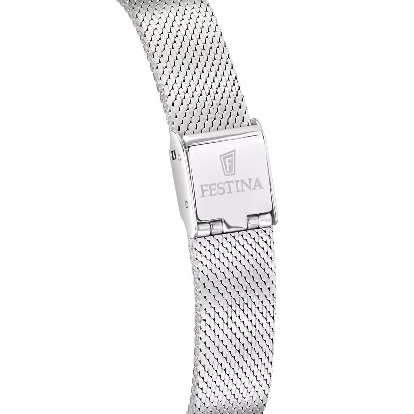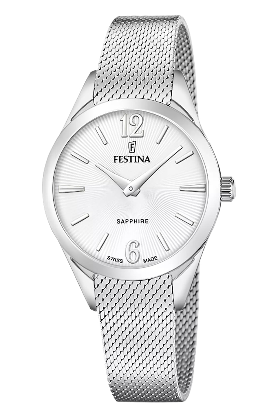 Firma Festina byla založena ve Švýcarském La Chaux-de-Fonds v roce 1902. V roce 1984 převzal značku Miguel Rodriguez a došlo k jejímu začlenění do skupiny Festina-Lotus group. Díky začínajícímu rozmachu quartzových strojků se právě v této době začala psát nová epocha této značky, roku 1992 se dokonce stává oficiálním partnerem pro měření času na závodech Tour de France a toto partnerství vydrželo až do roku 2016. Dnes je sídlo společnosti v Barceloně a vysoce kvalitní výrobní centrum je vybudováno ve švýcarském Herbetswill. Ve španělské Cordobě sídlí výrobní centrum se specializací na zlaté hodinky a dále společnost disponuje výrobními kapacitami dokonce i v Asii. Ve všech těchto střediscích probíhá kompletní proces výroby hodinek: konstrukce, výroba, montáž mechanismu, dodání a po-prodejní servis. Postupem času značka expanduje po celém světě a v rámci Festina Group získává na francouzském a španělském hodinářském trhu vedoucí postavení. Díky velkému úsilí o inovace a zavedení moderních technologií, byla Festina Group schopna popularizovat materiály a postupy které její hodinářské výrobě přinesly jedinečnou exkluzivitu, navíc nabízí opravdu širokou modelovou řadu hodinek.