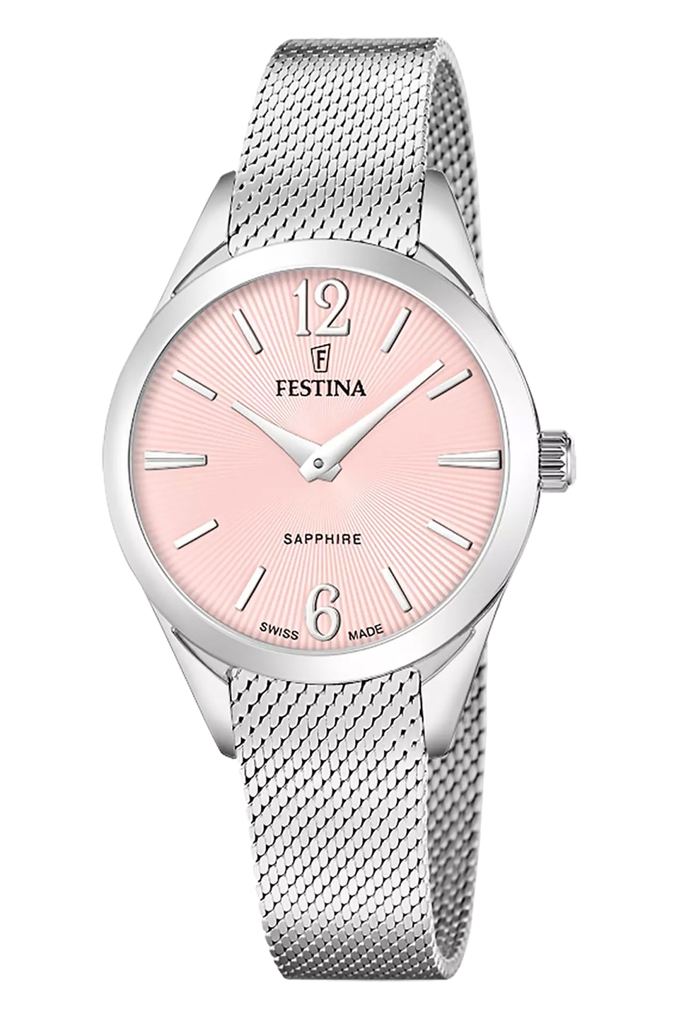 Firma Festina byla založena ve Švýcarském La Chaux-de-Fonds v roce 1902. V roce 1984 převzal značku Miguel Rodriguez a došlo k jejímu začlenění do skupiny Festina-Lotus group. Díky začínajícímu rozmachu quartzových strojků se právě v této době začala psát nová epocha této značky, roku 1992 se dokonce stává oficiálním partnerem pro měření času na závodech Tour de France a toto partnerství vydrželo až do roku 2016. Dnes je sídlo společnosti v Barceloně a vysoce kvalitní výrobní centrum je vybudováno ve švýcarském Herbetswill. Ve španělské Cordobě sídlí výrobní centrum se specializací na zlaté hodinky a dále společnost disponuje výrobními kapacitami dokonce i v Asii. Ve všech těchto střediscích probíhá kompletní proces výroby hodinek: konstrukce, výroba, montáž mechanismu, dodání a po-prodejní servis. Postupem času značka expanduje po celém světě a v rámci Festina Group získává na francouzském a španělském hodinářském trhu vedoucí postavení. Díky velkému úsilí o inovace a zavedení moderních technologií, byla Festina Group schopna popularizovat materiály a postupy které její hodinářské výrobě přinesly jedinečnou exkluzivitu, navíc nabízí opravdu širokou modelovou řadu hodinek.