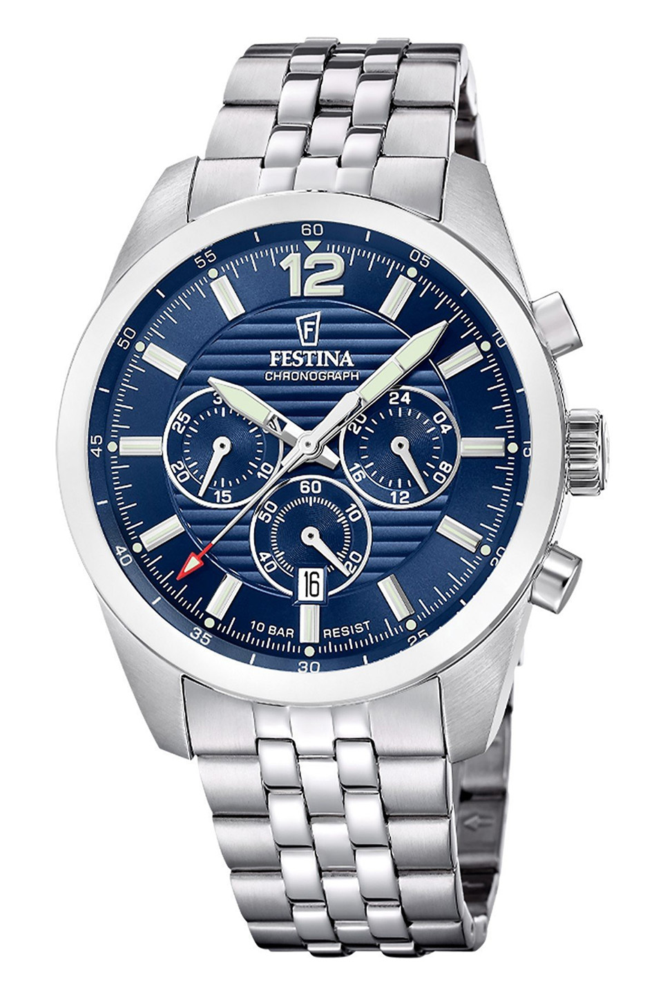 Hodinky Festina Timeless Chronograph dokáží nabídnout opravdu rozsáhlou variabilitu vzhledů. Společnost Festina si vzala v této kolekci za cíl umožnit každému najít svůj ideální model vybavený chronografem. Celá modelová řada je vyrobena z ušlechtilé oceli a svou vysokou škálu možností ještě podtrhuje nabídkou hodinek s hranatým tvarem pouzdra. Sportovní design, který skvěle doplní váš out-fit i při nejnáročnějších příležitostech. Hodinky Festina Timeless Chronograph tikají stejně intenzivně a odhodlaně jako bijící srdce sportovce, který si jde pro své vítězství.