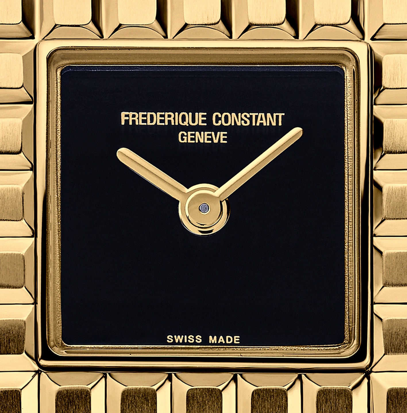 Nejde o složitost ani exkluzivitu. Jde o lehkost. Spíše o doplněk než o nezbytnost. Spíše o rebelii než o tradici. O ducha doby, životní styl a smysl pro módu, které Frederique Constant s vervou oživil už na počátku 21. století. Nejlépe je lze popsat jako náramek – se sedmi pružnými, plynule navazujícími články – který tak trochu mimochodem ukazuje čas. Bezpečně obepíná zápěstí, aby obstál i při divokých tanečních eskapádách, a je vybaven integrovanou, a tedy neviditelnou, skládací sponou. Uprostřed se nenápadně usazuje černý číselník z onyxu, po němž kloužou pouze dvě ručičky označující hodiny a minuty. Pouzdro se žlutým PVD pozlacením je silné pouhých 6,45 mm a část s číselníkem má rozměr 25,7 × 20 mm s voděodolností do 30 m. Každý model pohání quartzový kalibr FC-200 s výdrží baterie až 60 měsíců.