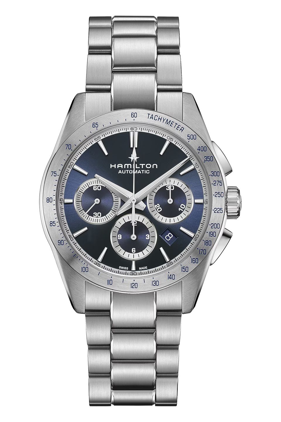 Řada hodinek Hamilton Jazzmaster Performer je navržena pro ty, kteří hledají dokonalou rovnováhu mezi funkčností a stylem, a nabízí výrazný sportovně elegantní vzhled. Automatický chronograf Jazzmaster Performer je poháněn strojkem H-31 s 60 hodinovou rezervou chodu. Hodinky mají 42 mm pouzdro z nerezové oceli, které doplňuje elegantní tmavě modrý číselník a výrazný nerezový náramek, podtrhující moderní a sebevědomý charakter modelu.