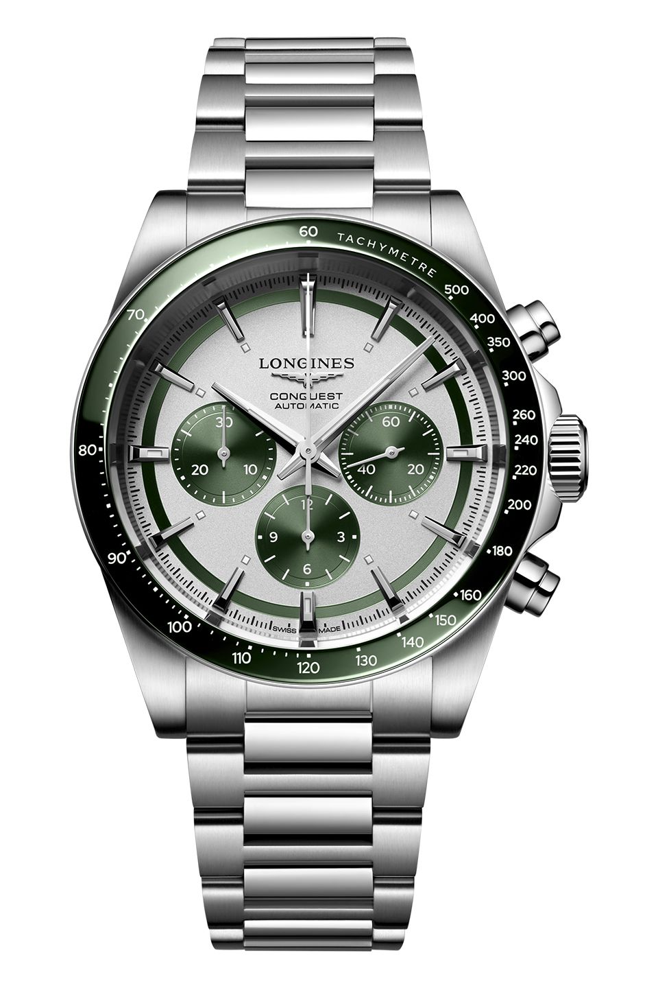 Pánské hodinky mají robustní pouzdro z nerezové oceli o průměru 42 mm, tloušťce 14,30 mm, voděodolnosti do 100 m, které v sobě ukrývá švýcarský automatický strojek L898 rezervou chodu až 59 hodin. Luneta opatřená tachymetrickou stupnicí je vyrobená ze zelené keramiky, která je velmi odolná vůči poškrábání. Přehledný číselník stříbrné barvy má povrchovou úpravou imitující sluneční paprsky, tři zelené subčíselníky a je krytý safírovým sklíčkem s oboustrannou antireflexní vrstvou. Ručky i jednoduché indexy jsou stříbrné barvy a je na nich aplikována Super-LumiNova, pro lepší čitelnost při obtížných světelných podmínkách. Vše doplňuje náramek z nerezové oceli se zapínání řešeným motýlovou sponou.