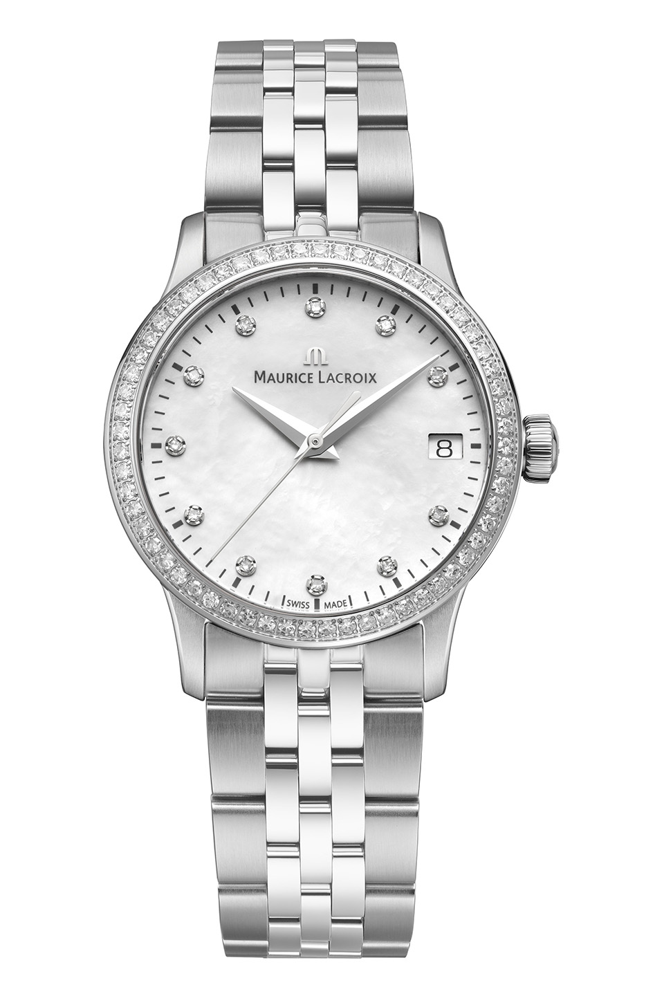 Kolekce 1975 se vyznačuje elegantním stylem a ladnými proporcemi, vyzařuje vintage atmosféru a zároveň slibuje trvalou přitažlivost. Kolekce 1975 je čistá, rafinovaná a vyznačuje se vysokou vnímanou hodnotou. Je sice nová, ale zůstává plná známých charakteristik značky Maurice Lacroix. Luneta hodinek obsahuje 60 diamantů.