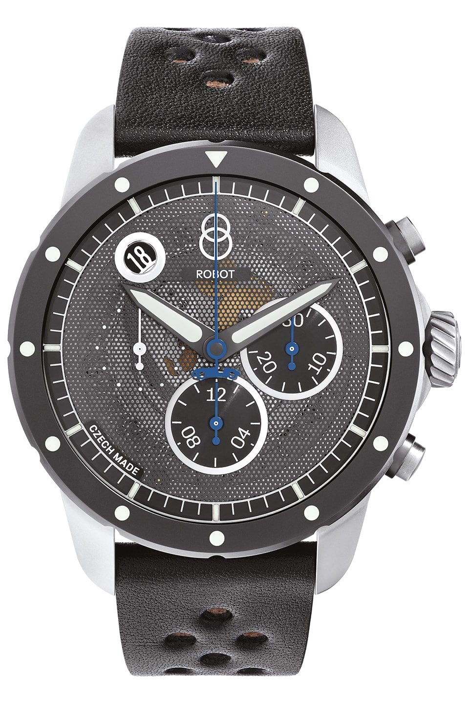 MINOR - Pocta legendárnímu českému automobilu Aero Minor Sport Sportovně zaměřený chronograf ROBOT MINOR je poctou závodníkům a legendárnímu českému automobilu Aero Minor Sport. Ten v roce 1949 vyhrál legendární závod 24 hodin Le Mans a dnes tuto legendu čs. motorsportu můžete opět vídat na závodních tratích a veteránských přehlídkách.
