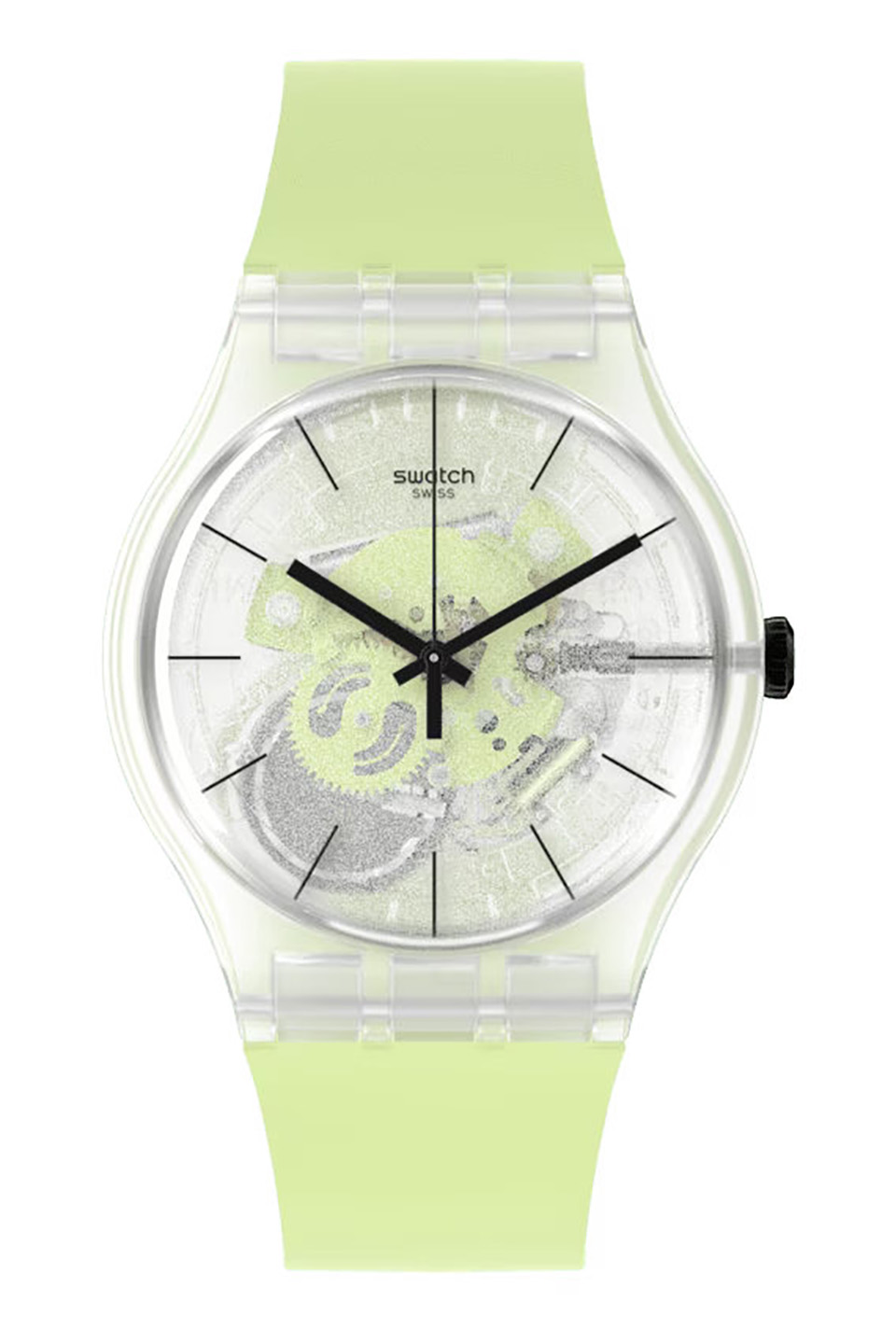 Tyto svěží zelené hodinky dodají každému outfitu jarní nádech. Mají průhledné matné pouzdro z biologických materiálů a matný silikonový řemínek se světle zeleným potiskem. Průhledné pouzdro s poloprůhledným bílým potiskem, černým potiskem a světle zelenými prvky mechanismu vytváří přitažlivou hloubku.