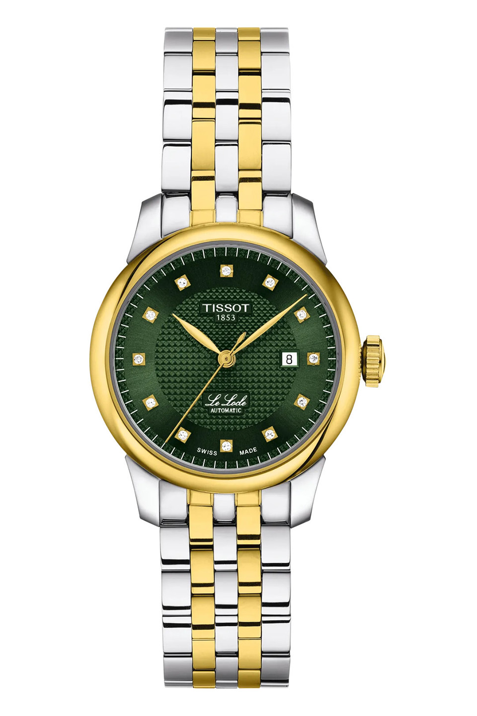 Tento model vyniká elegantním zeleným číselníkem, na němž klasické římské indexy nahrazuje dvanáct třpytivých diamantů, dodávajících hodinkám luxusní a sofistikovaný charakter. Nechybí typický vzor clous de Paris ve formě drobných pyramid, který vytváří jedinečnou texturu a hloubku číselníku. Nápis „Le Locle“ psaný kurzívou podtrhuje jejich tradiční šarm a odkaz na švýcarské dědictví.