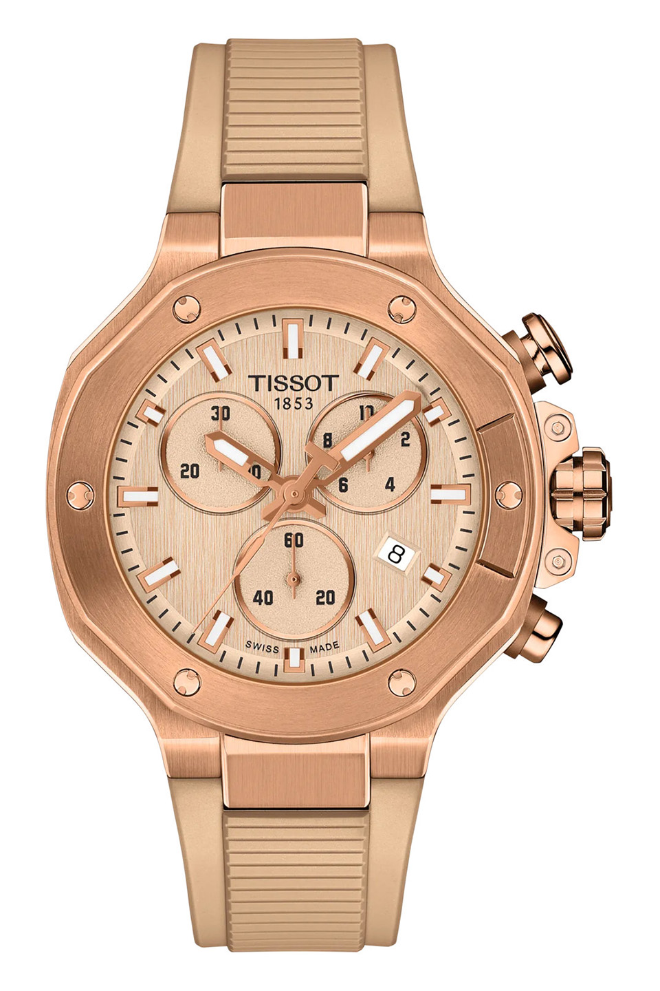 Tissot T-Race podtrhuje ducha motosportu a poprvé do některých modelů integruje švýcarský automatický strojek. Design hodinek je inspirován rámem i jinými částmi motocyklů nebo závodními koly. Včetně takových ikon jako brzdové kotouče nebo napodobení odpružení. Můžete vybírat z modelů s automatickými quartzovým strojkem s chronografem či bez, vždy ovšem s ukazatelem data u některých modelů vylepšeného zvětšovacím sklíčkem.