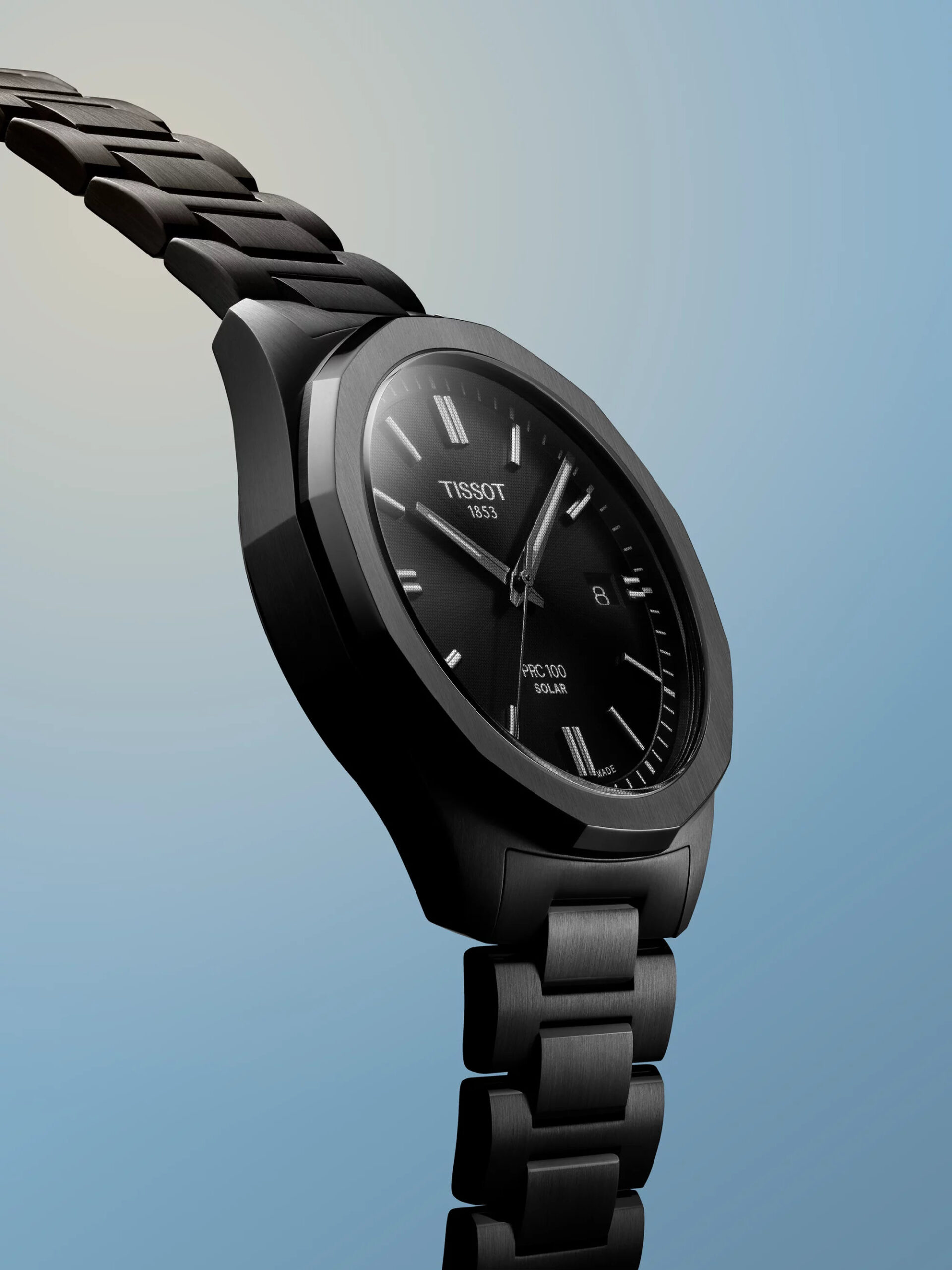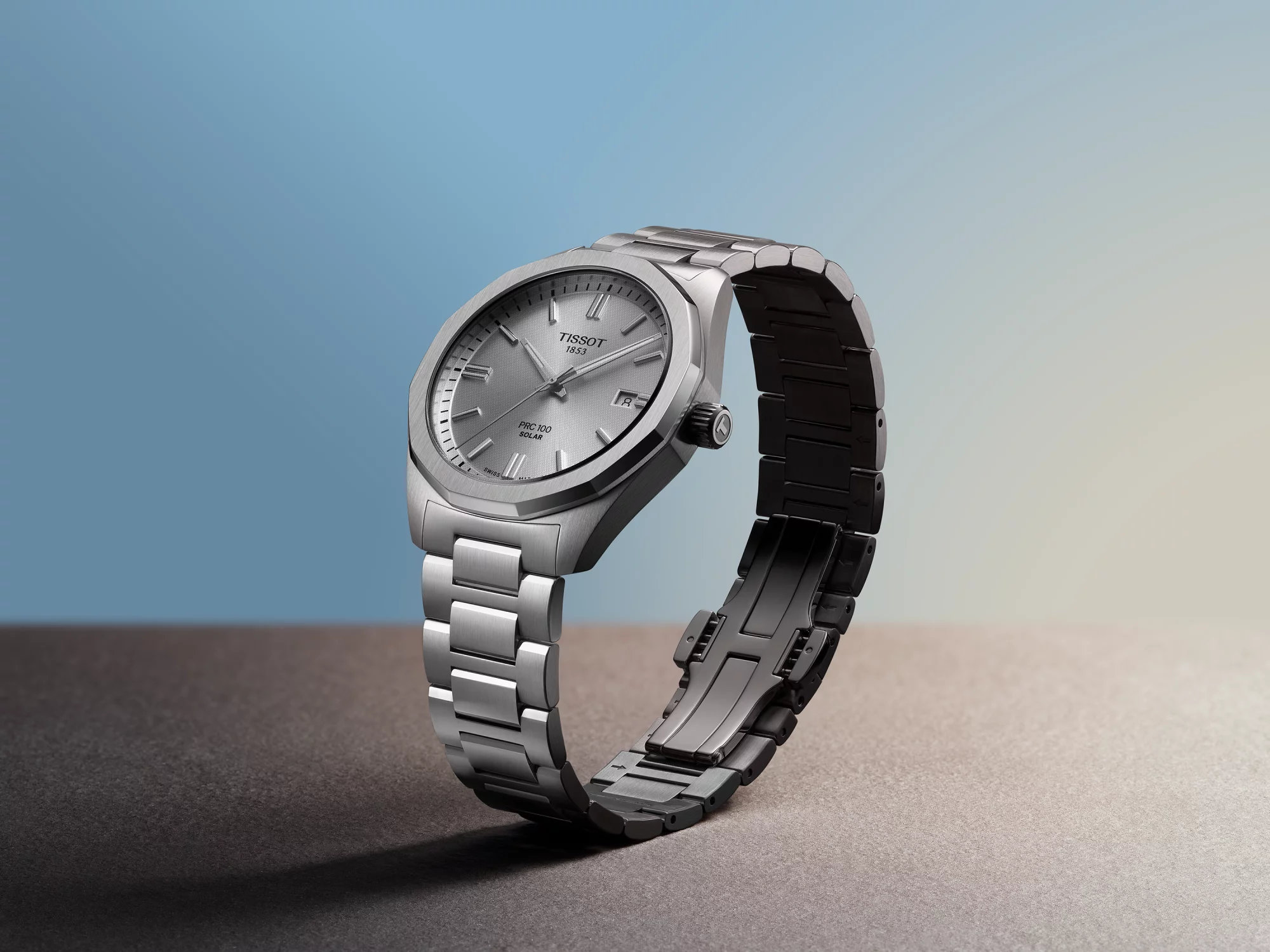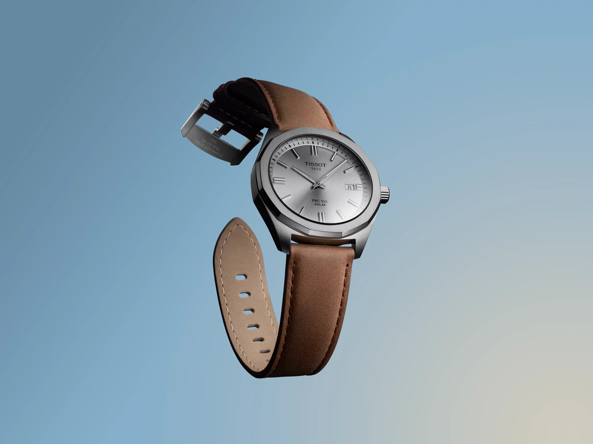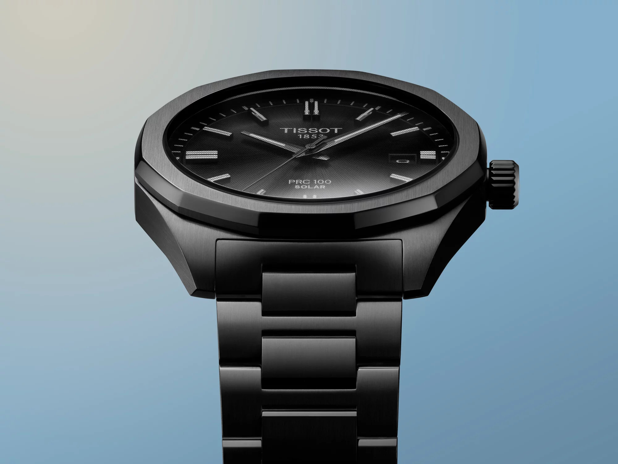 PRC 100 Solar upoutá svou odvážnou siluetou sunray a číselníkem, který hraje jemnými odlesky. Modely jsou dostupné ve dvou velikostech, 39 mm a 34 mm, s možností volby mezi ocelovým náramkem nebo koženým řemínkem. Kolekce zahrnuje pět variant s pouzdrem 39 mm, včetně elegantní nerezové oceli se stříbrným nebo tmavě modrým číselníkem. Pro milovníky minimalistické elegance je tu celočerné provedení, zatímco modely s koženým řemínkem nabízejí klasický kontrast mezi ocelí a hnědou kůží.