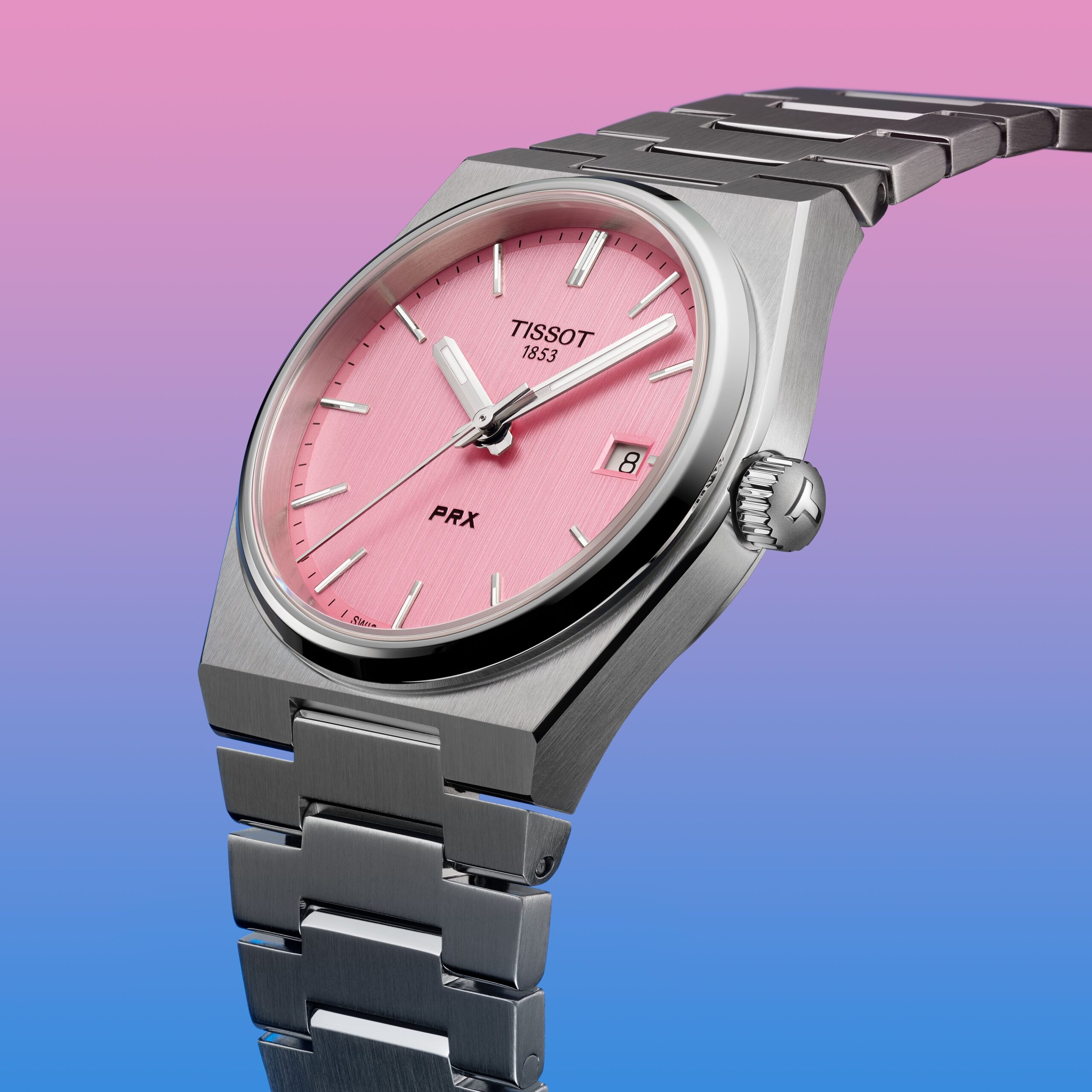 Pro menší zápěstí nabízí Tissot dvě nové alternativy 35mm verze quartzových hodinek. Jedny z nich jsou vybavené perleťovým číselníkem, který svým organickým perleťovým leskem ukazuje zázrak přírody pro jedince, kteří hledají diskrétní špetku půvabu. Broušený růžový číselník navíc vyzařuje svěží modernost se současnou vintage estetikou kolekce PRX.
