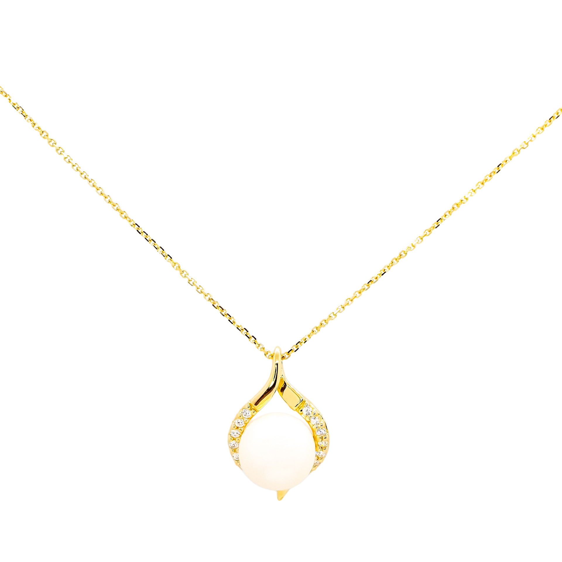 Náhrdelník ze žlutého zlata s perlou a zirkonyHmotnost šperku 2,60 gRyzost zlata 585/1000