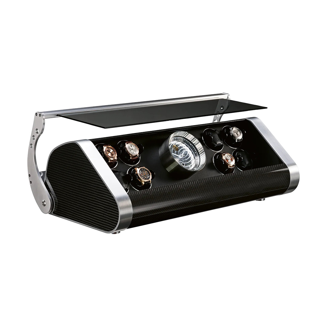 Model REVOLUTION zaujme svou inovativní konstrukcí a filozofií designu. Výsledkem je jedinečné zasazení cenných sbírek hodinek, které se radikálně liší od klasických krychlových nebo obdélníkových pouzder.