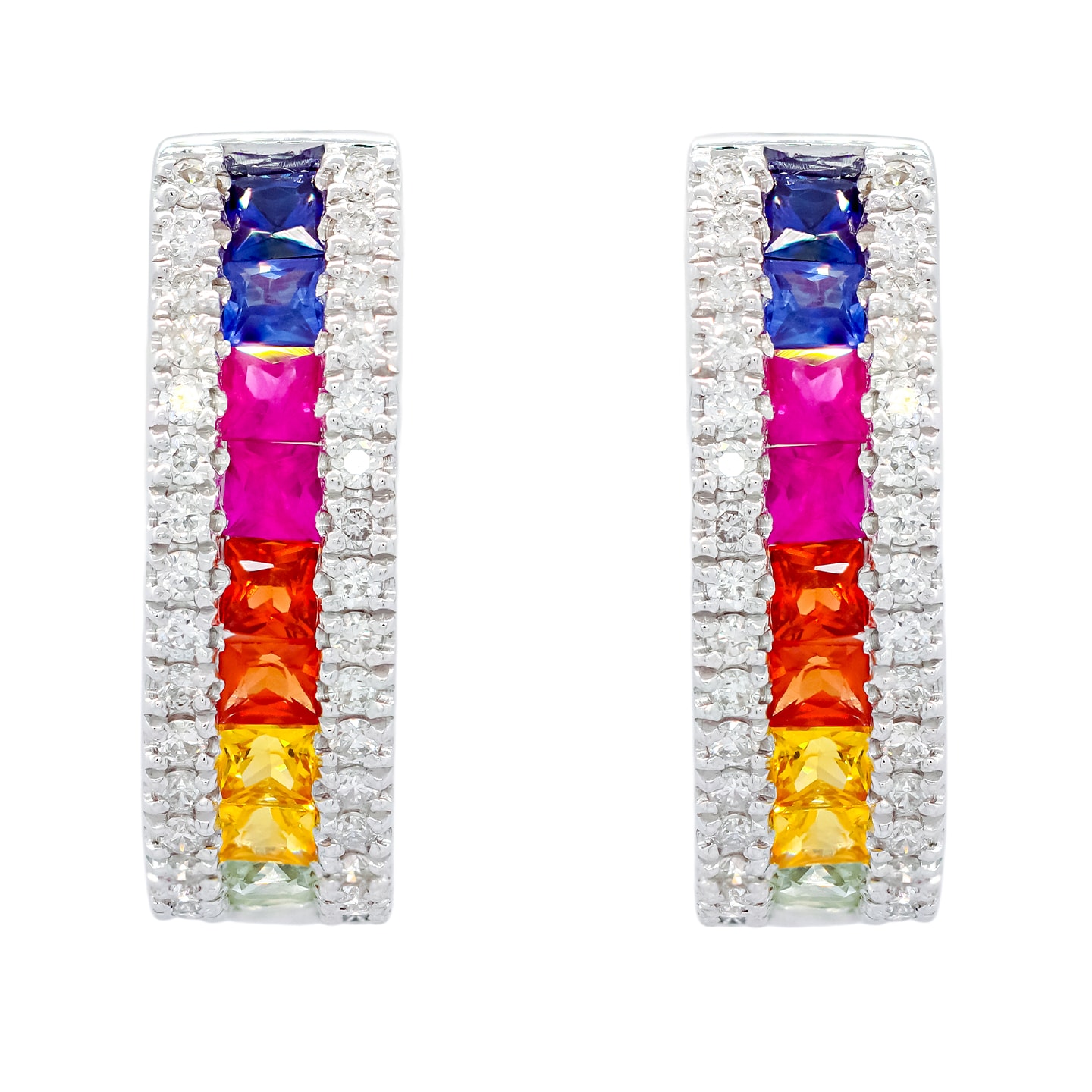 Náušnice z bílého zlata s barevnými safíry a diamanty