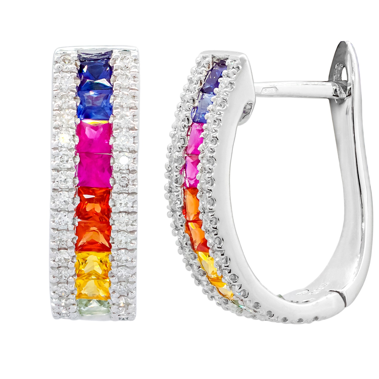 Náušnice z bílého zlata s barevnými safíry a diamanty DAE1016MCS14W