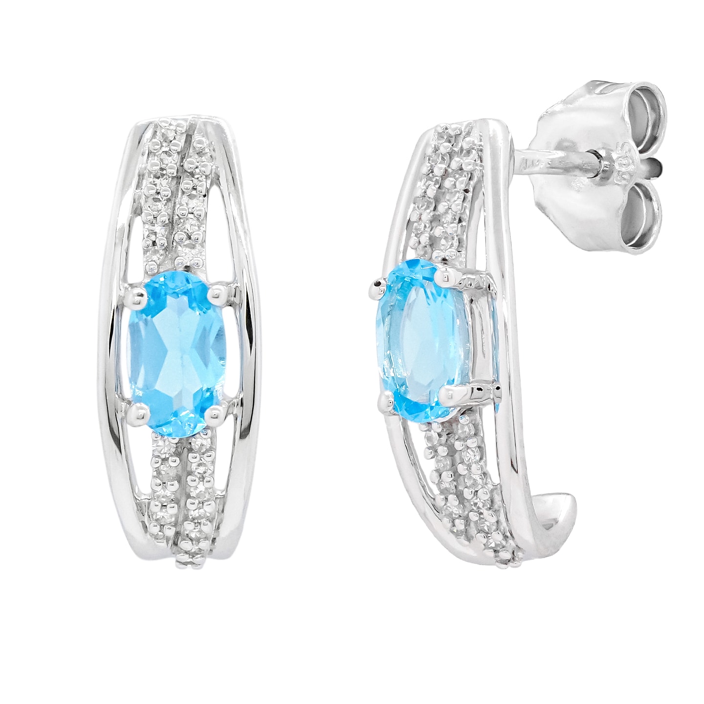 Náušnice z bílého zlata s topazem a diamanty E1788BTW