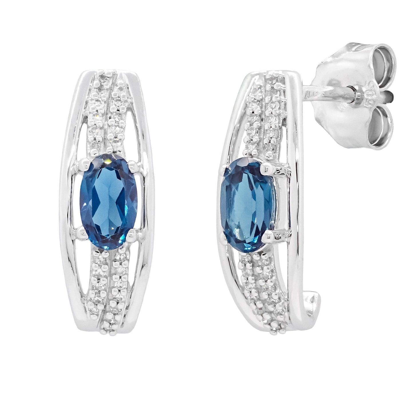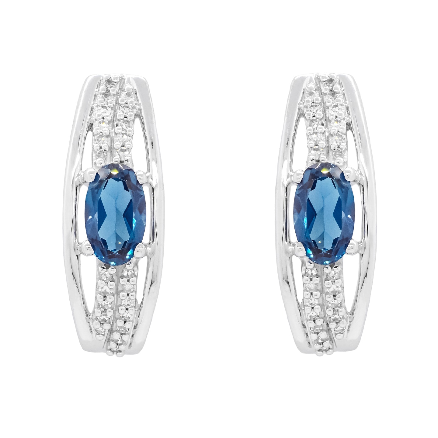 Náušnice z bílého zlata s London blue topazem a diamanty