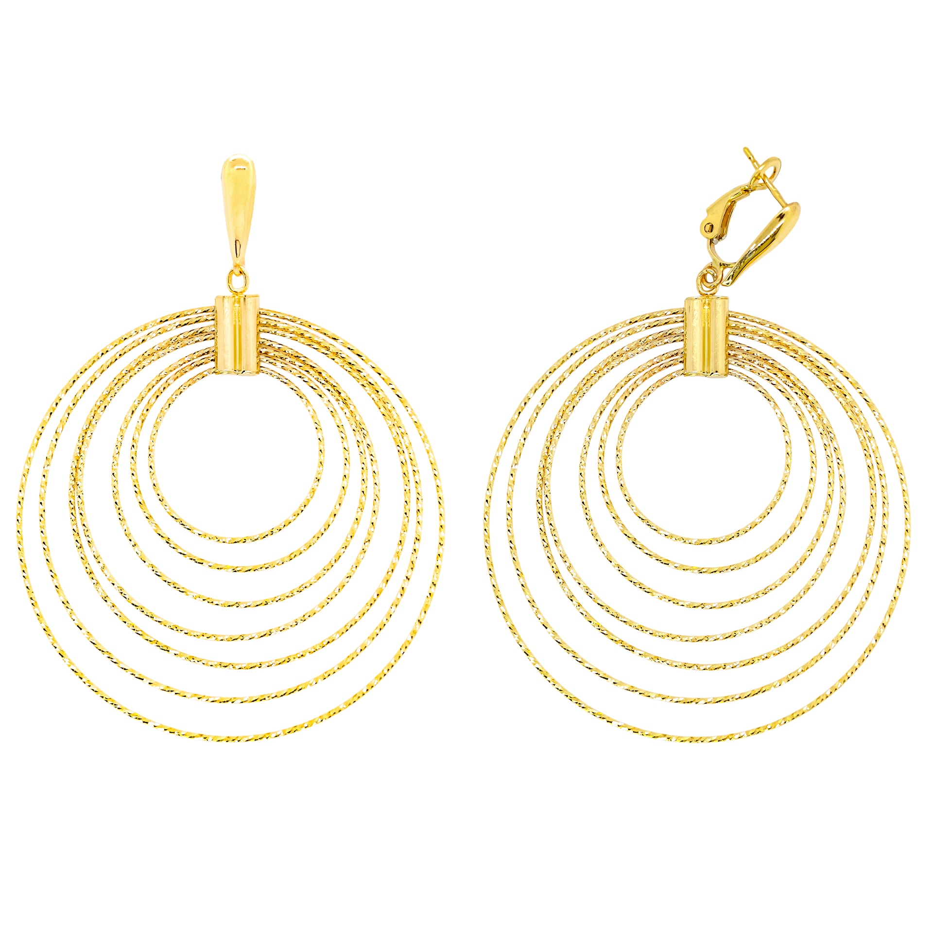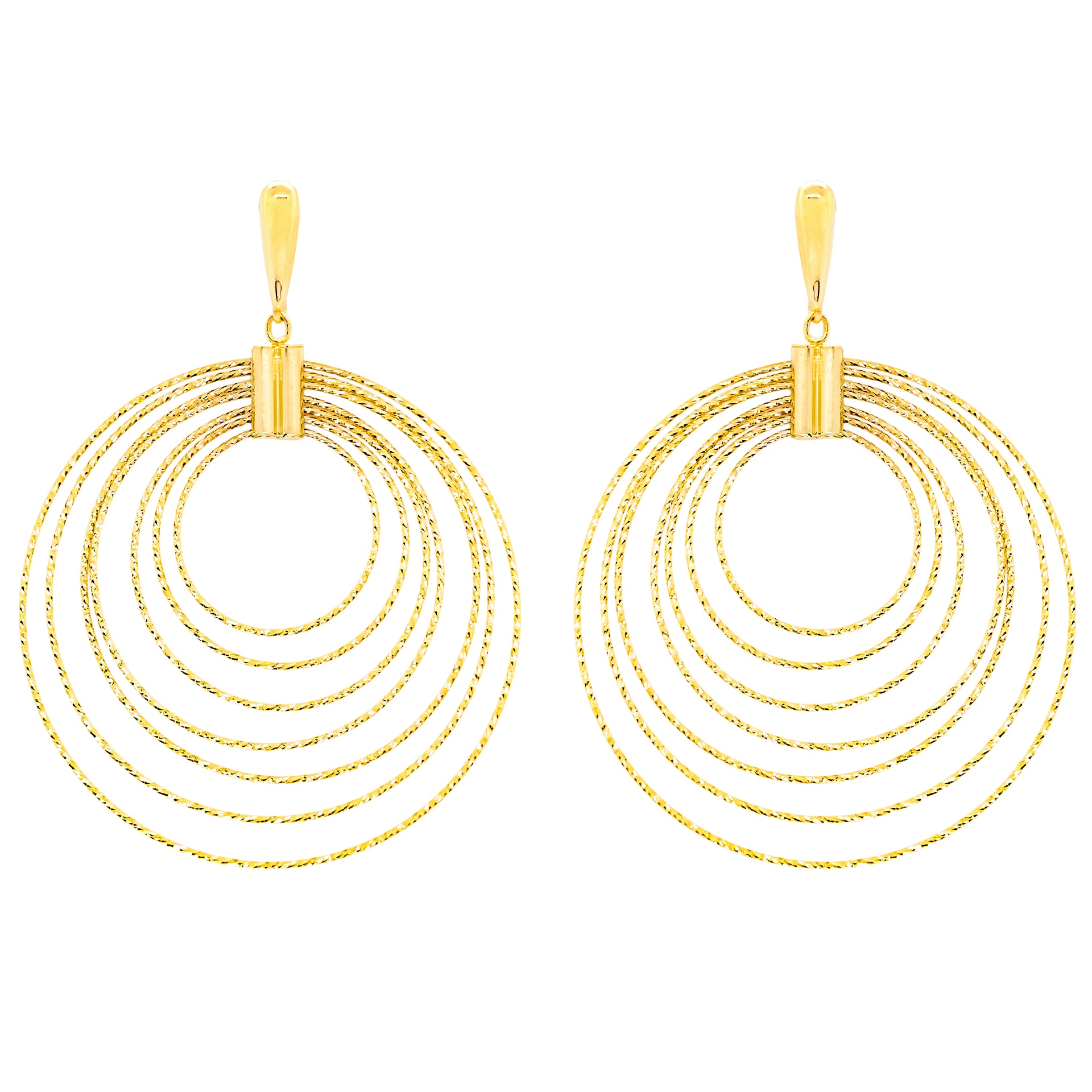 Náušnice ze žlutého zlata - kruhyRyzost zlata 585/1000Hmotnost šperku 11,05 gRozměry: největší kruh - 5,2 cm nejmenší - 2,1 cm