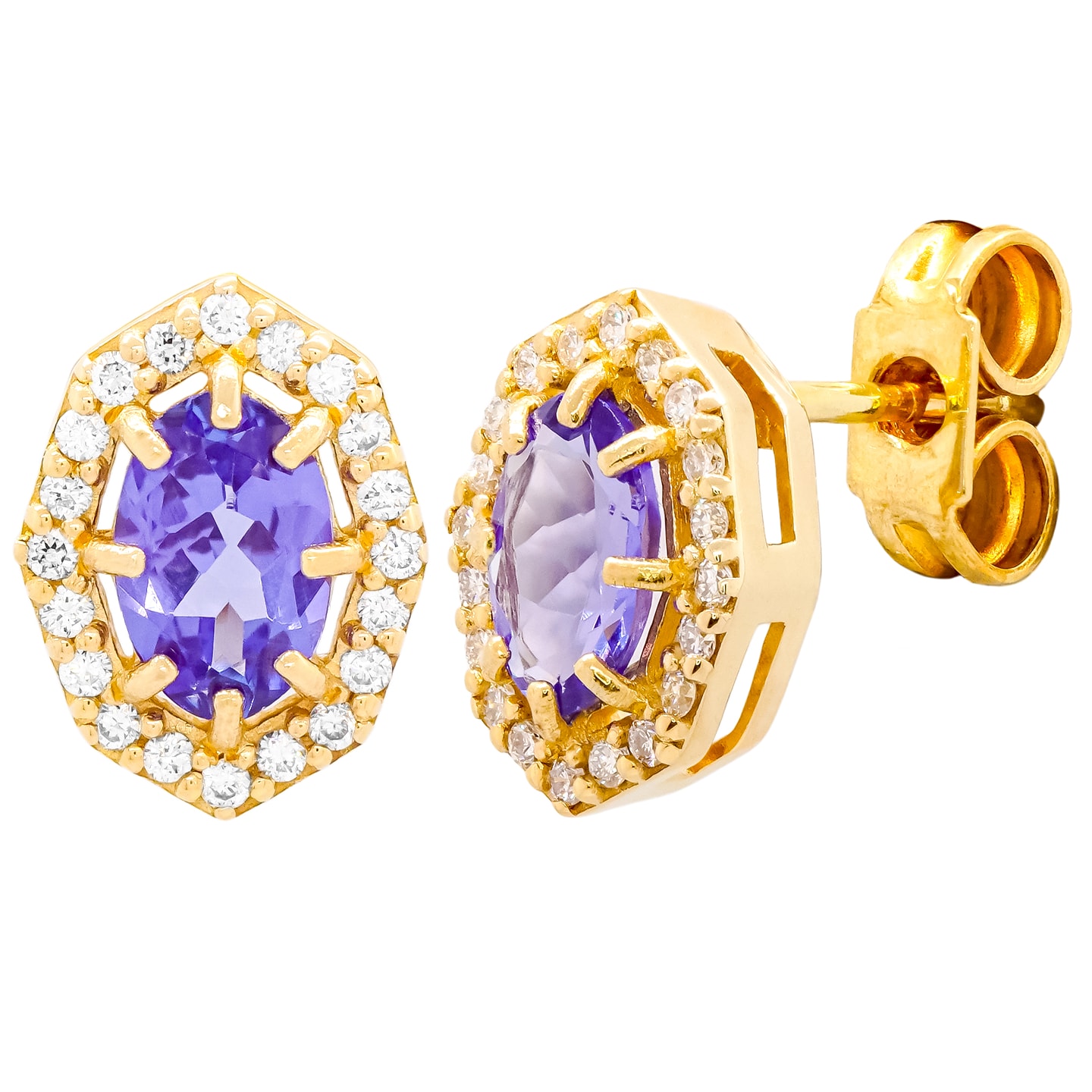 Náušnice ze žlutého zlata s tanzanitem a diamanty