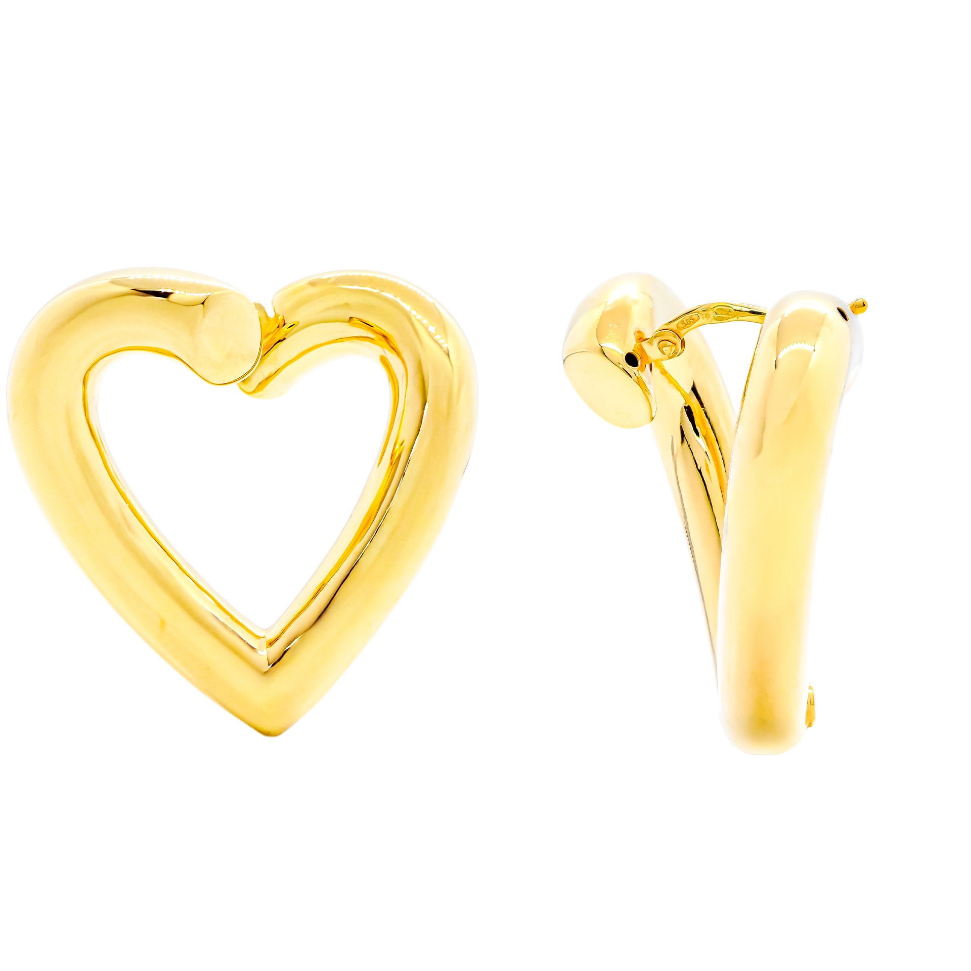 Náušnice ze žlutého zlata ve tvaru srdceRyzost zlata 585/1000Hmotnost šperku 6,20 gRozměry: 3,2 x 3,3 cm (šířka x výška)
