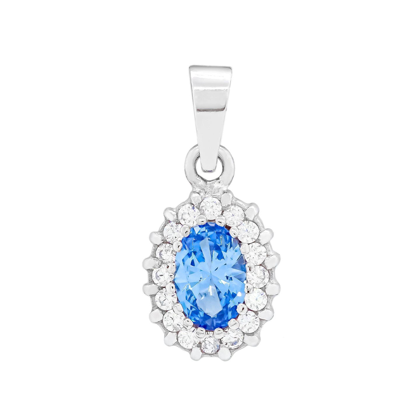 Přívěsek z bílého zlata se světle modrým a bílými kamenyHmotnost šperku 0,80 gRyzost zlata 585/1000