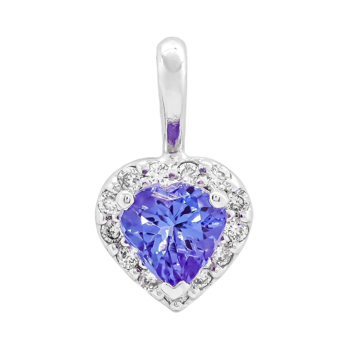 Přívěsek z bílého zlata ve tvaru srdce s tanzanitem a diamanty PR093