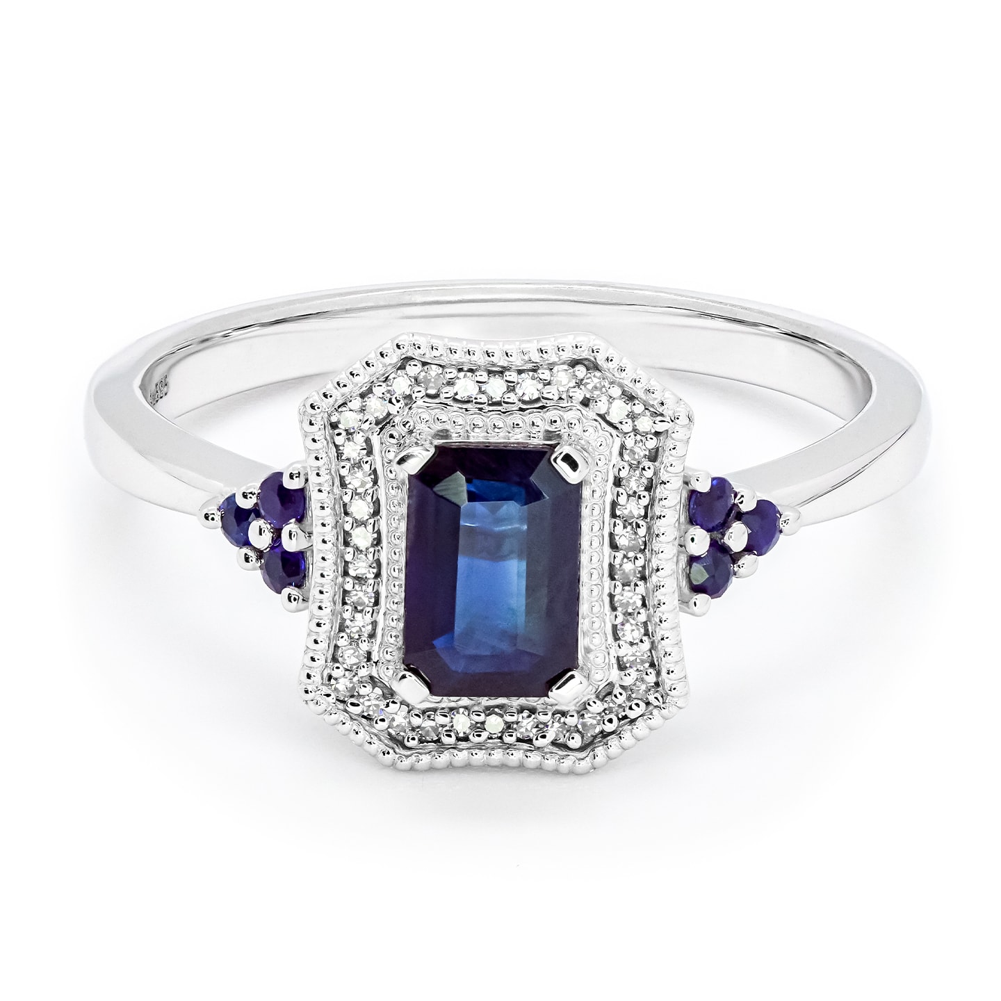 Prsten z bílého zlata s diamanty a safíry R3626SAPW