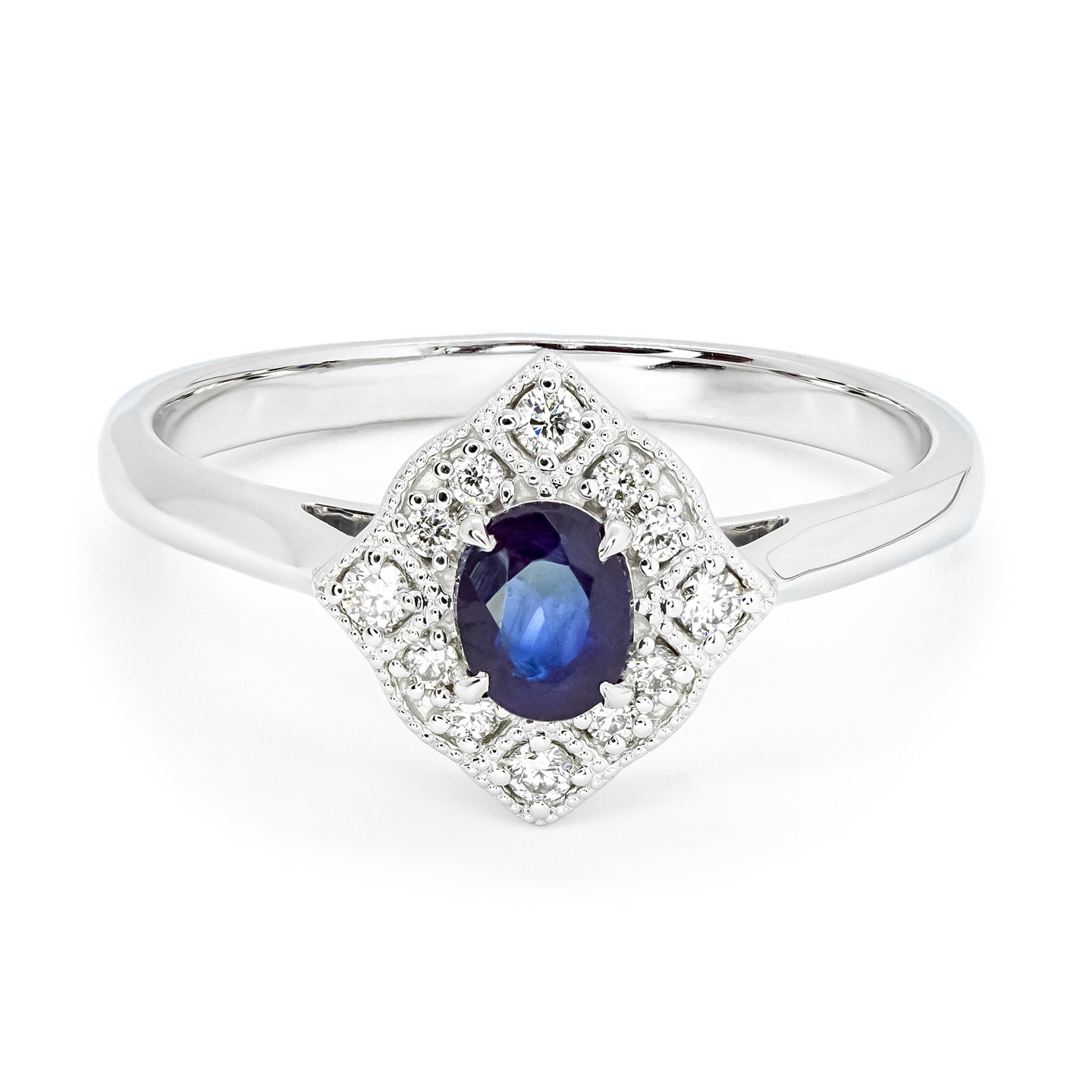 Prsten z bílého zlata s diamanty a safíry R5370SAPW