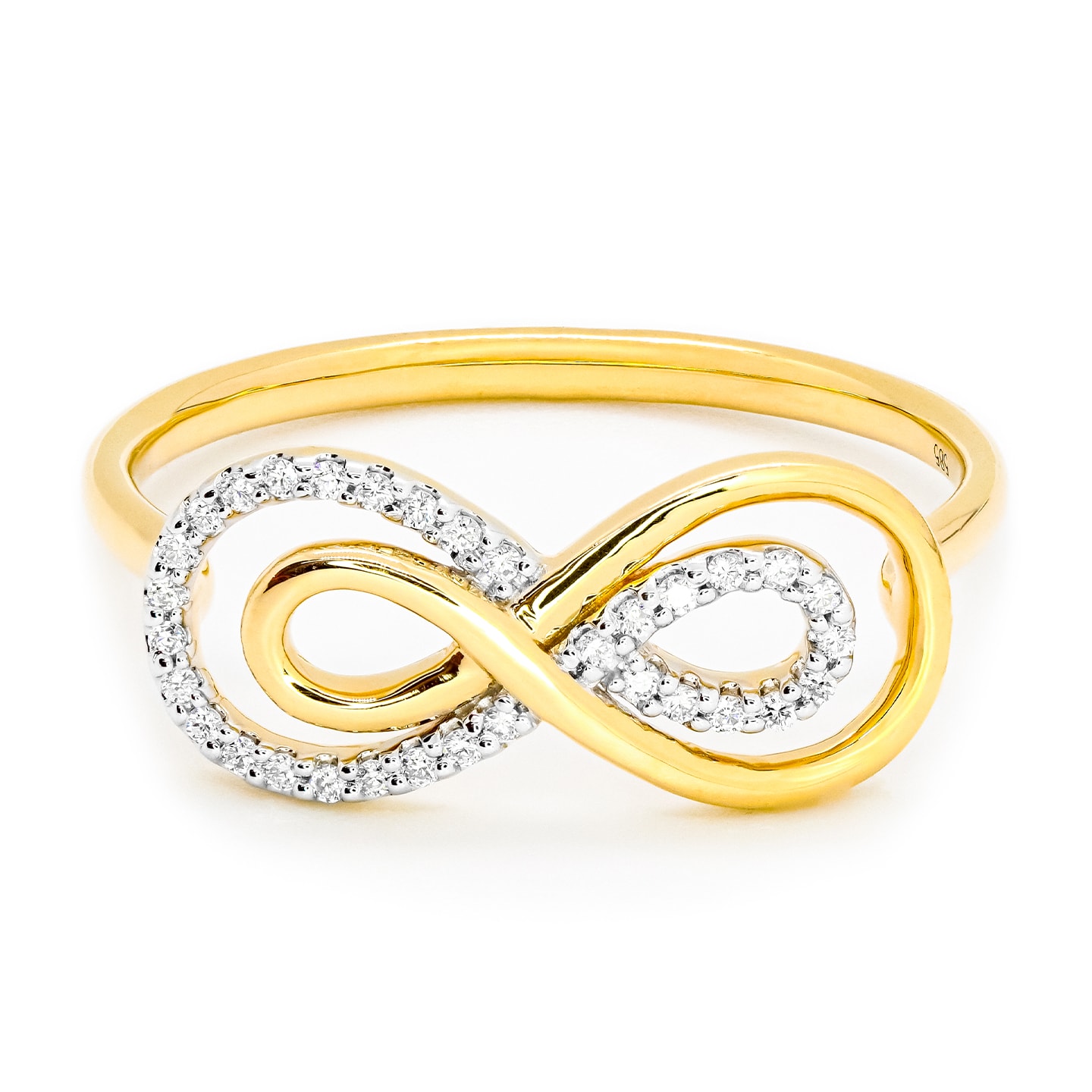 Prsten ze žlutého zlata s tvarem nekonečna a diamanty