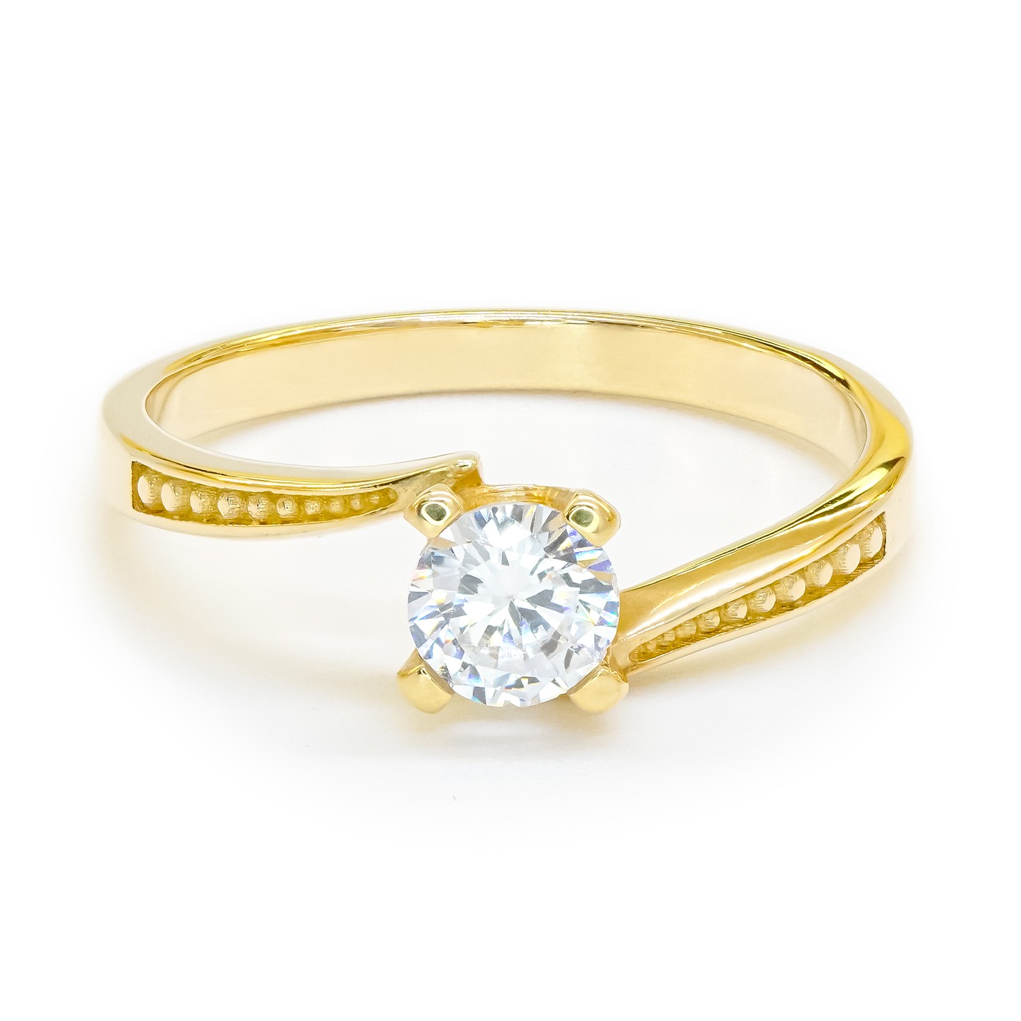 Zásnubní prsten ze žlutého zlata se zirkonemHmotnost šperku 2,25 gRyzost zlata 585/1000